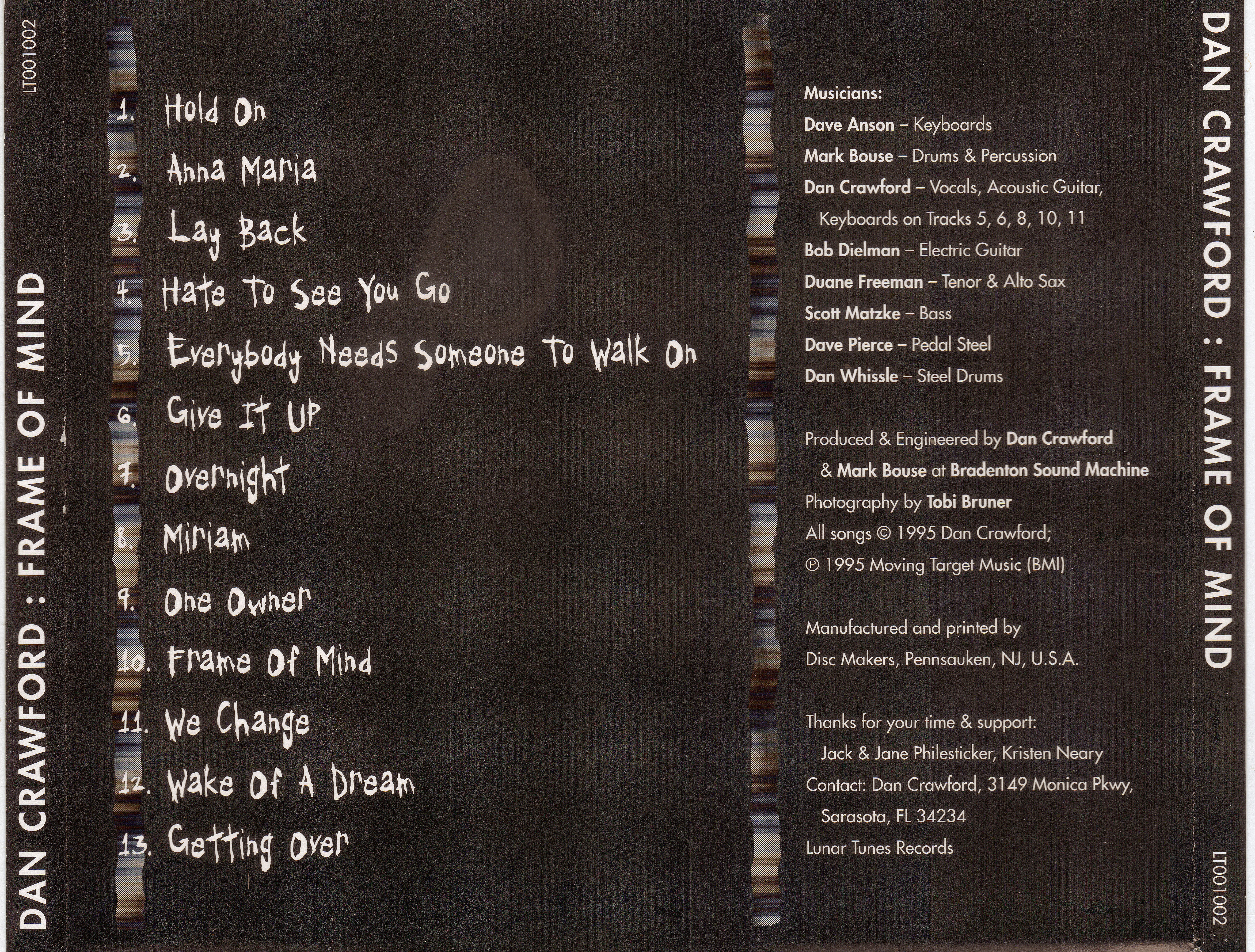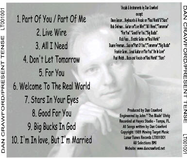 Dan's four solo CDs, Moving Target and Tapwater Conchs CDs are available for purchase for