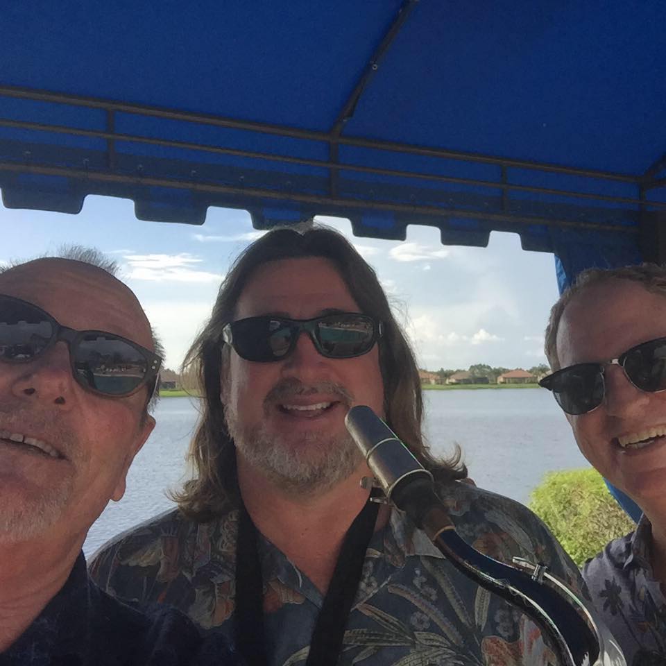 Moving Target, also Dan's music publishing company, is an ensemble of musicians featuring Jay Heath on saxophones, flute, and vocals; Dan on guitars, keyboard, harmonicas, and lead vocals, and Jeff Dillon on percussion. See Band Bios below for more details about the band members. Regulars at Sharky's on the Pier, Moving Target started as a "fill in" band on Sunday evenings at the Longboat Key Hilton when someone else couldn't make the gig. They quickly became the band of preference and branched out to become one of the area's leading groups. Moving Target performs at popular night spots, large corporate functions, music festivals, and private clubs and parties. Band Bios Dan Crawford grew up in Flint, Michigan, where he trained vocally from age four. He took up the guitar at age 12, then later keyboards and harmonica and started playing in various bands and writing songs. He moved to Florida in 1977 as a soloist and helped form the band “Overture” in 1980. He has recorded two solo CDs (“Present Tense” and “Frame Of Mind”) , one CD with “The Jeff Adams Band”, and one CD with The Tapwater Conchs. Currently, he divides his time between solo performances and the band “Moving Target”. Jay Heath is a sax virtuoso who's sound adds a distinctive jazz edge to the Moving Target sound. Jeff Dillon is local Florida native and has been playing drums since he was 13 years old. His percussion drives the sound of Moving Target. Performances include dance bands, theatre productions, parades, ethnic and jazz festivals, concerts, television, and studio recordings.
